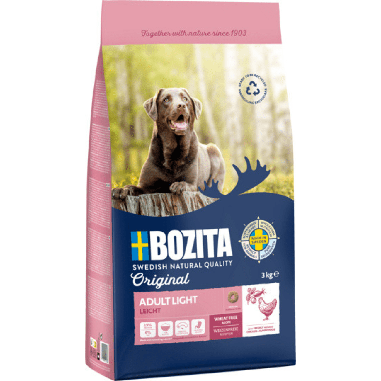 Bozita Original Light nisuvaba on täissööt madala aktiivsusega või ülekaalus olevale täiskasvanud koerale. See ühe valgu sisaldusega täissööt on nisuvaba ja valmistatud värskest Rootsi kanalihast. Sisaldab vitamiine ja antioksüdante supertoitudest – kibuvitsamarjadest, mustikatest ja pohladest.