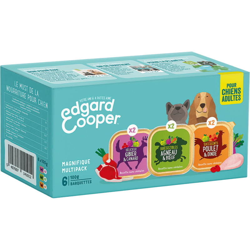 Edgard Cooper konservide valik täiskasvanud koertele kana ja kalkuniga, uluki ja pardiga, lamba ja veisega.