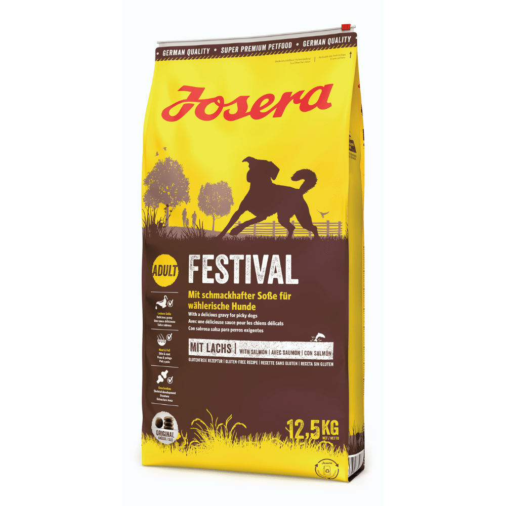 Josera Festival täissööt lõhega koertele unikaalne menüü meie tähelepanelikele asjatundjatele: seda toitu võib pakkuda nii kuivalt kui ka märjalt.